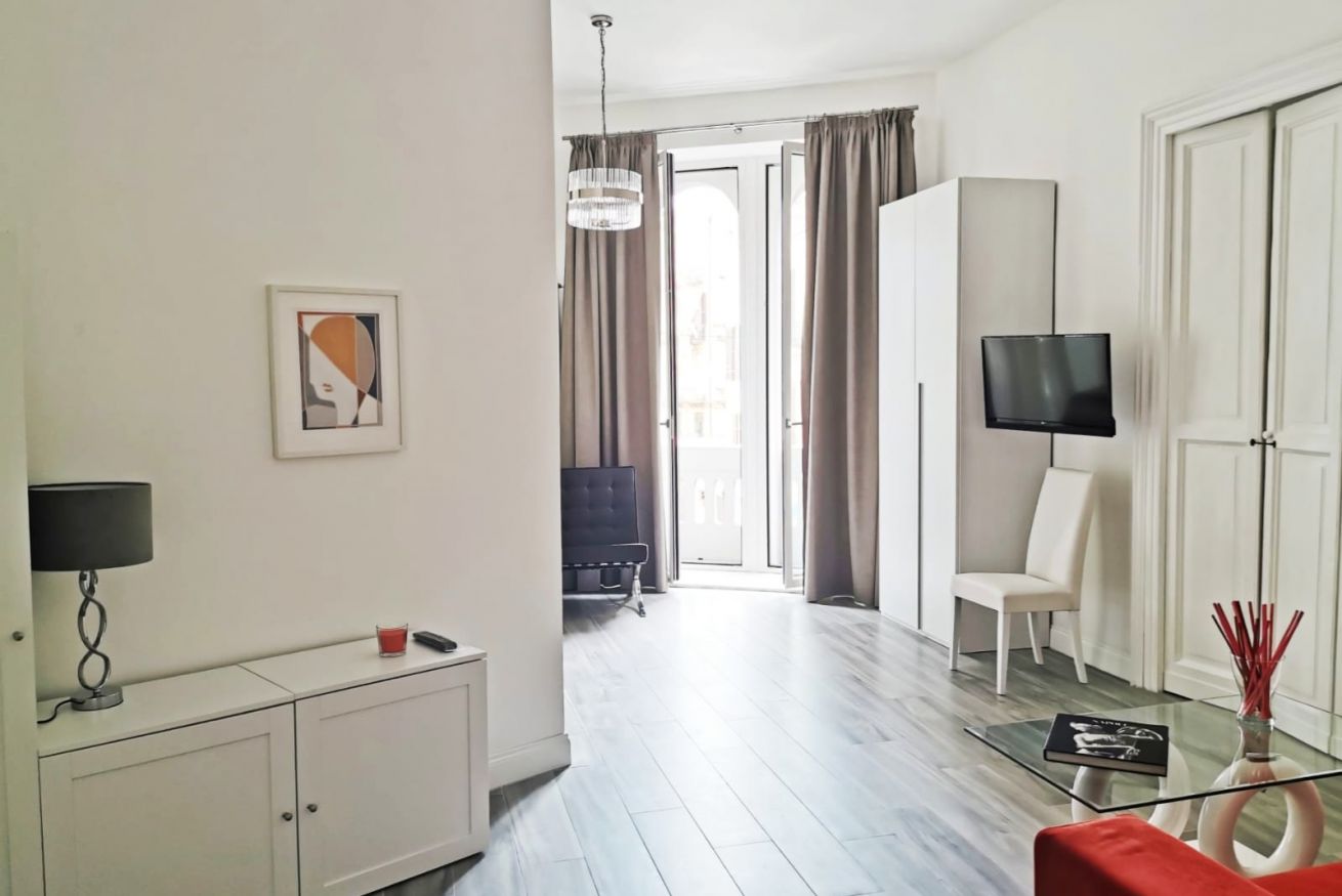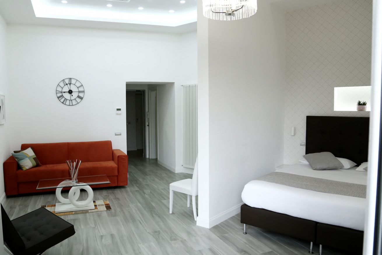 50sqm Open-Space apartment with large and bright windows, double bedroom with King-Size bed and living room with sofa bed.
