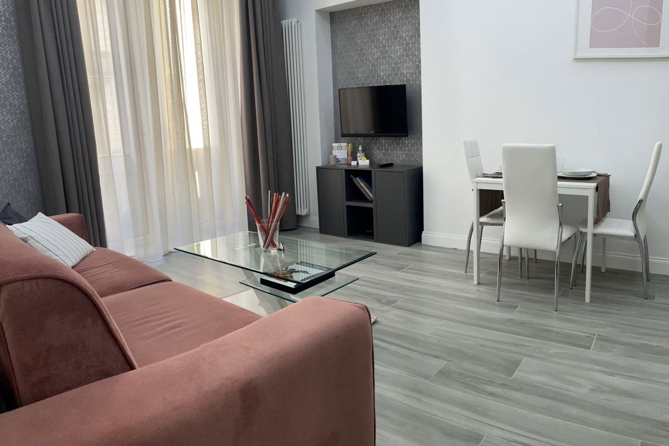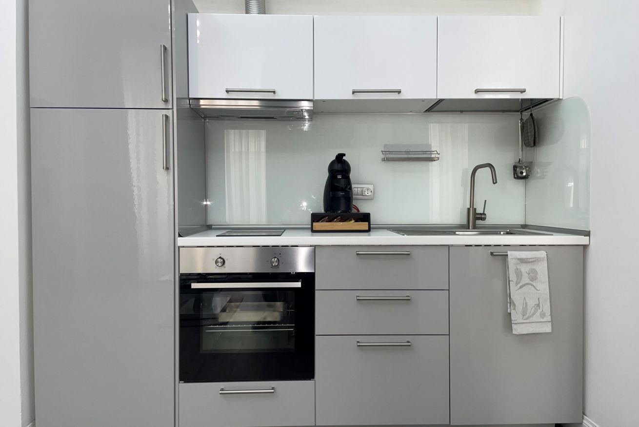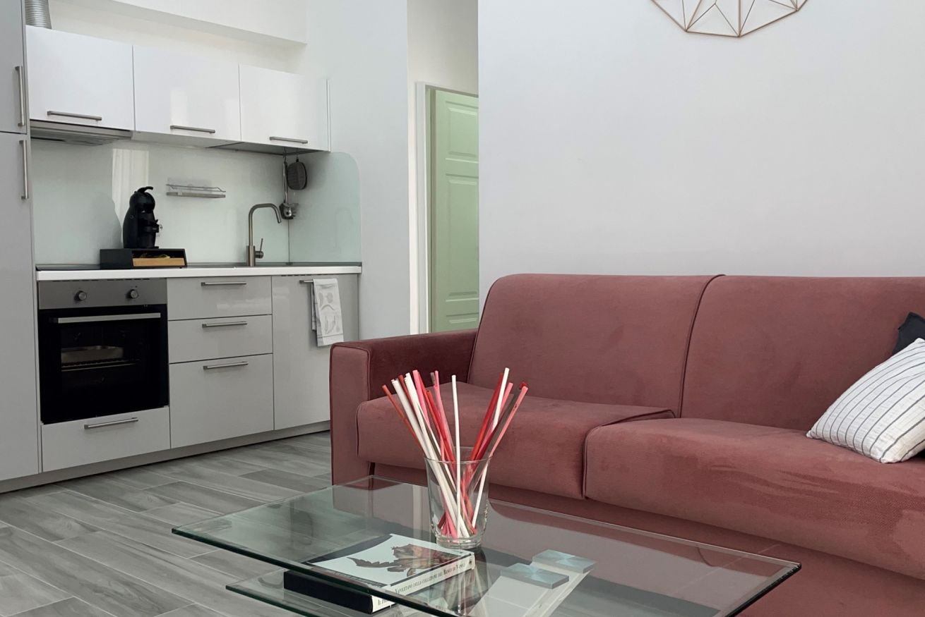 -Soggiorno con divano letto e cucina completamente attrezzata (induzione, forno, microonde, bollitore, tostapane, macchina per il caffè a cialde e tutti gli utensili necessari)